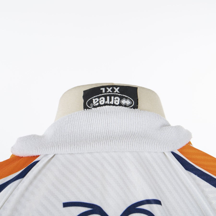 The shirt made by Errea for the 1998/1999 season is in perfect condition, the fabric is excellent and has its original characteristics, with intact stitching, vivid colour, no halos or color discontinuities. Size XL