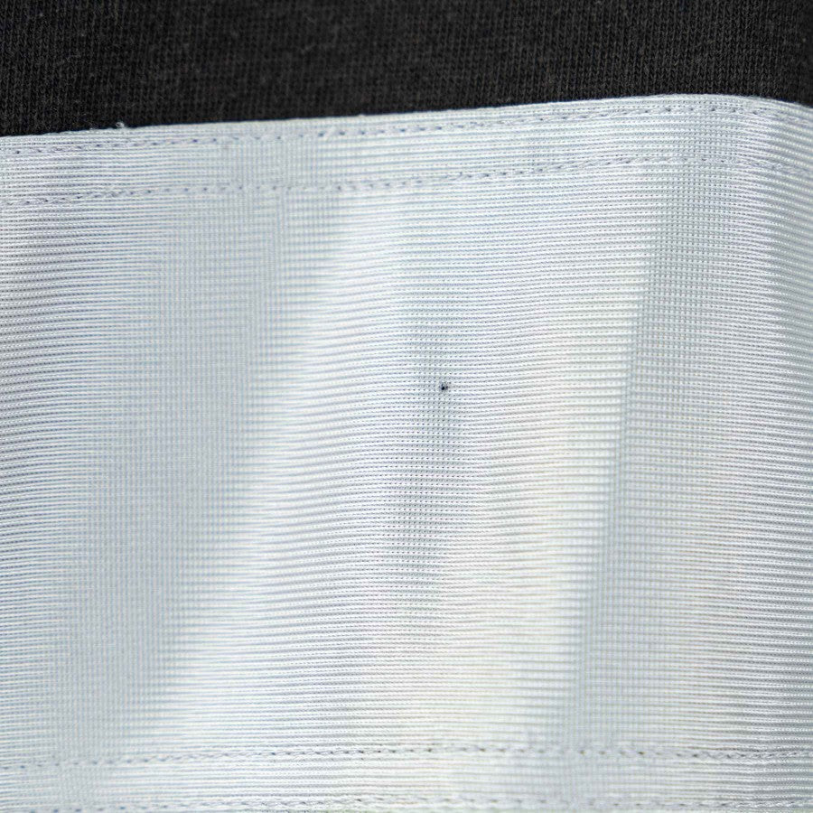 The Lazio team's jersey is black, with a light blue horizontal band that crosses the chest and light blue inserts, in the same fabric, on the back of the sleeves. The plush collar is black, as is the V-neck, which is also bordered by a white stripe. The brand of the commercial sponsor Del Monte is highlighted on the chest, while the emblem of the sports club is sewn on the heart side and the logo of the technical sponsor Puma is applied on the right side, shown in a larger format on the back, in light blue and edges blacks.