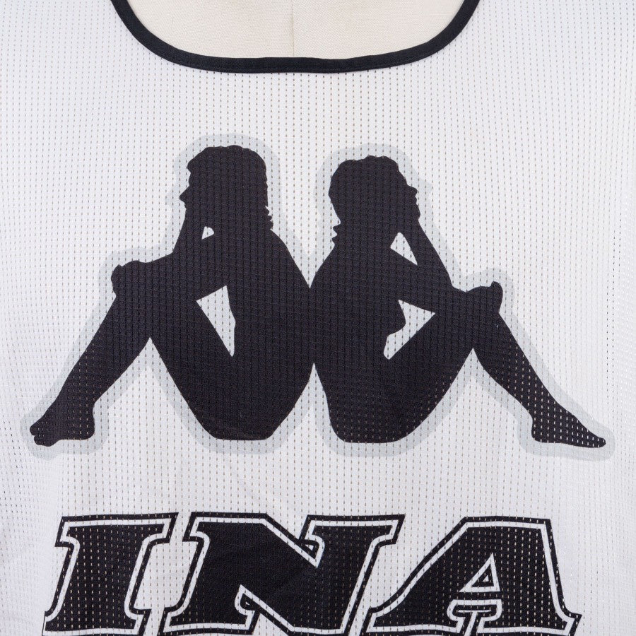 The white tank top has a black outline and in the center of the chest there is the logo of the technical sponsor Kappa, while further down there is the logo of the commercial partner Ina Assitalia, both in the same size. These logos are also reproduced on the back of the tank top.
