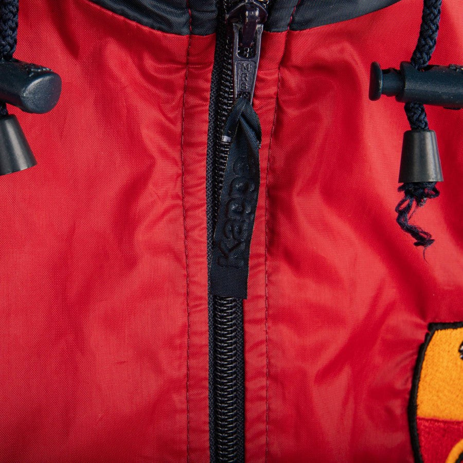 Red model with blue inserts, full zip model with personalized zip and side pockets with zip. On the heart side we find the As Roma and Ina Assitalia logo, on the right the embroidered Kappa logo.