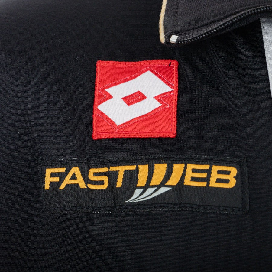 The product is clearly visible from the following photos. The jacket is long-sleeved, with a zip in the center that does not go beyond the chest, in black in color above all, but also white in correspondence with the aforementioned zip; at the top left, nearby, the club logo and the shield are applied while on the opposite side we see the white logo of Lotto, the technical sponsor, kept in a red square, which is above the logo of FASTWEB, the commercial sponsor; the same structure of the Lotto logo is reproduced on both sleeves.