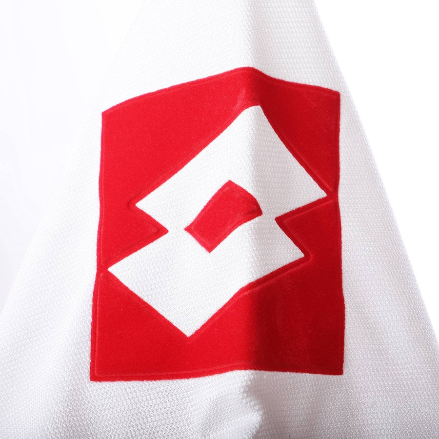Away model made by Lotto for the 2002/2003 football season. White color and short sleeve, the jersey is customized on the back in light plastic CAMORANESI 16. On the front is embroidered Juve patch on the heart side and sewn the tricolor shield on the right side. The logo of technical sponsor Lotto is applied in red flock in the center and on the two sleeves. The commercial sponsor is Tamoil. Finally, the Champions patch is applied on the right sleeve.