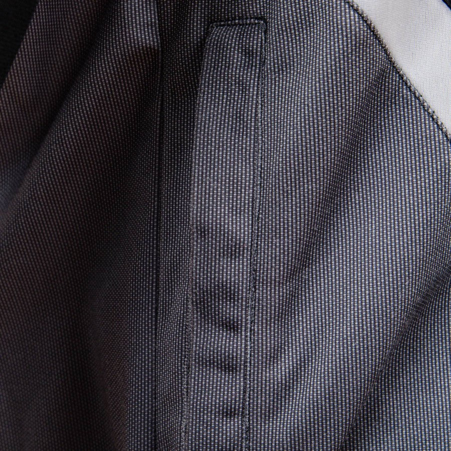 Coat of arms of the sports club with two gold stars sewn on the heart side. Logo of the technical sponsor Lotto applied on the right side, on the collar flap and, in a larger format, on the back of the jacket. Logo of the commercial sponsor Fastweb, in yellow, legible on the right side and on the back of the jacket. Lotto logo recalled on the arms and black and white club name reproduced on the back.