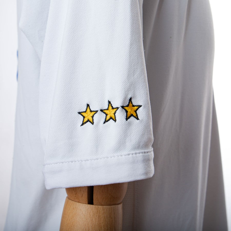 White Away version jersey produced by Kappa for the Korean World Cup. The jersey fabric is made up of 92% polyamide and 8% Lycra. On the front of the shirt there is the emblem of Italy sewn and on the sleeves there are the Kappa logo and the three stars. Worl Cup 2002 Korea Japan competition logo on left sleeve. Personalized shirt with Nesta's name and number 13.