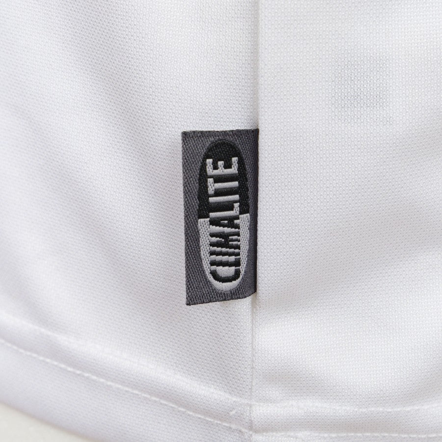 The logo of the Portuguese football club is sewn to the top left of the jersey, while the symbol of the technical sponsor Adidas is applied in red to the right, while the commercial sponsor Vodafone is clearly visible in the centre. The whole is represented on a white background, which contrasts with the red of the collar, resting on a V-neck, whose edges are adorned with a crossed white rope, threaded through the eyelets on the edges themselves. The lettering of the Lisbon club is recalled on the left arm, in red. On the back of the jersey, on the other hand, the logo of the second commercial sponsor, Banco Espirito Santo, is shown.