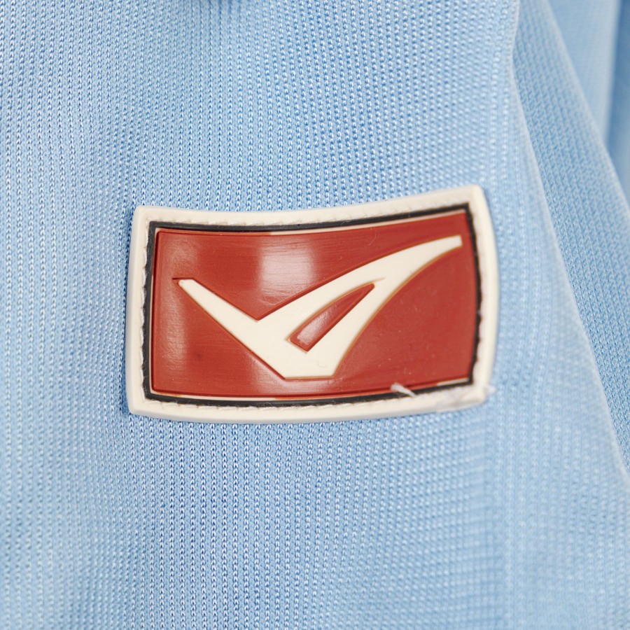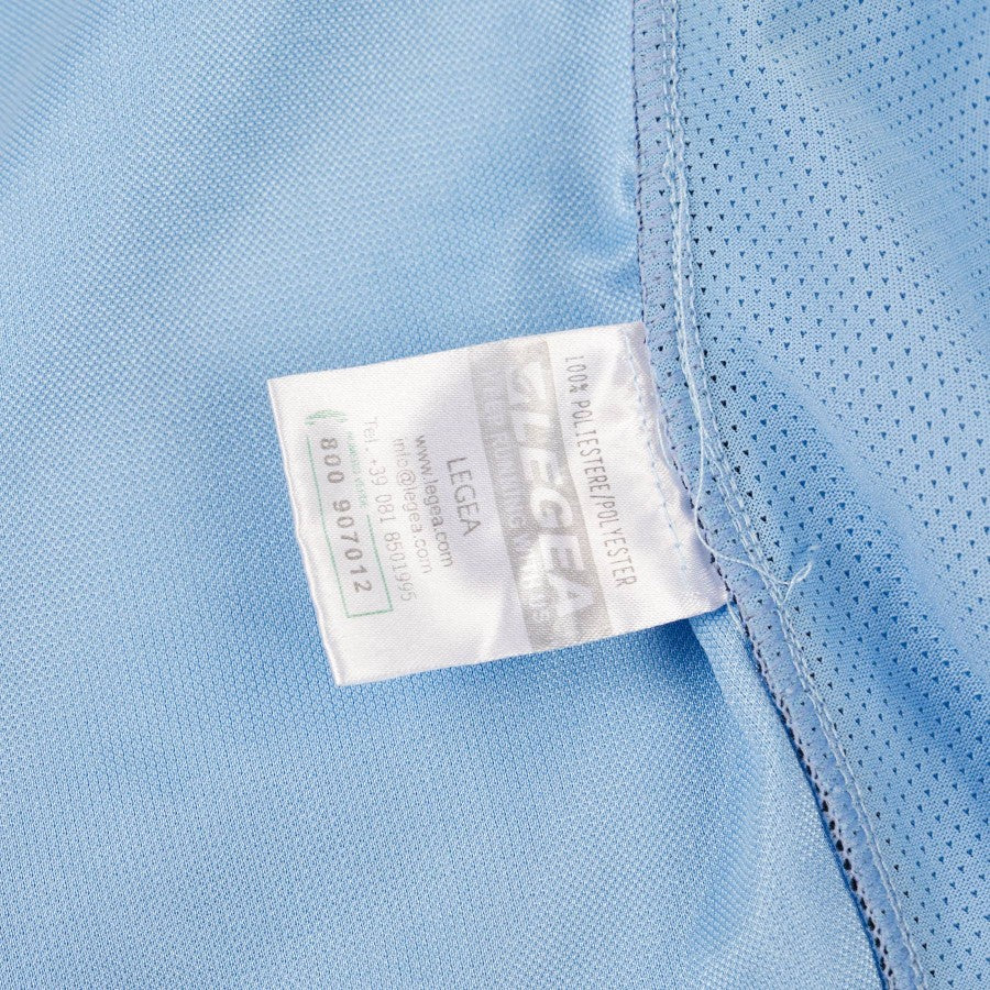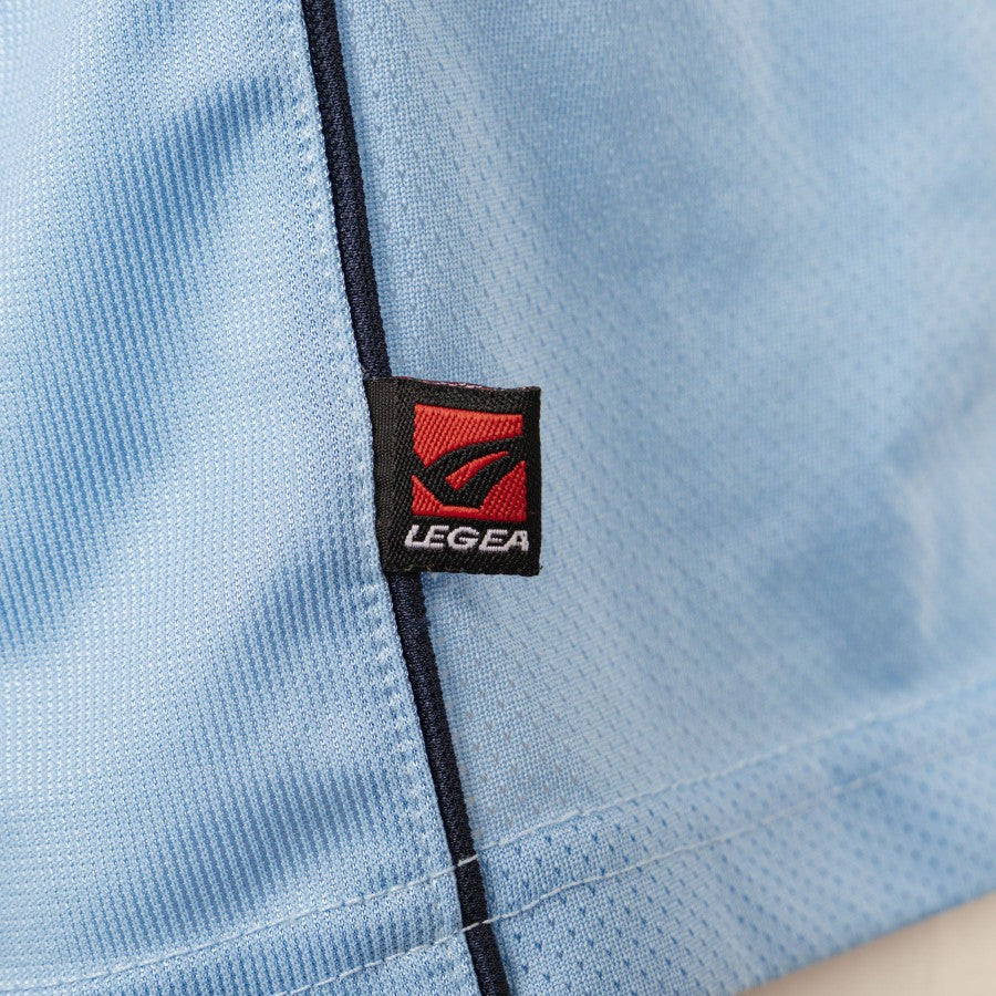 Home model with blue piping, knit inserts on the neck and hems, flocked Legea logo and lettering, stitched club crest. Commercial sponsor and customization Possanzini 18 thermo-applied