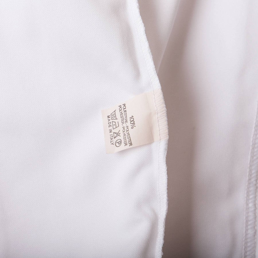 Even the personalization on the back, MANDELLI 4, is applied in burgundy velvet in contrast with the white of the jersey.