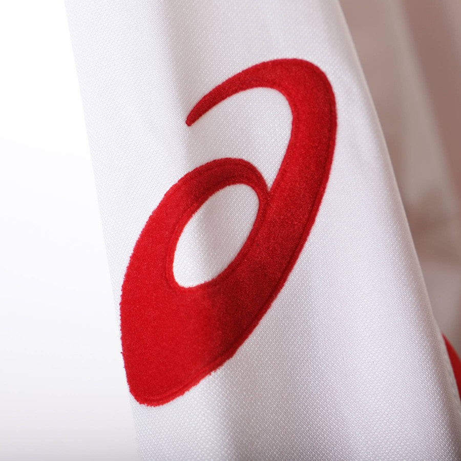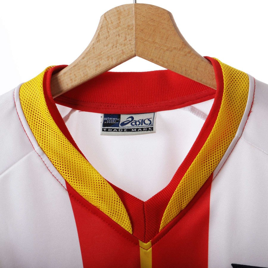 Home model of the 2004/2005 season, with long sleeves and V-neck. White with red and yellow details, especially on the collar.