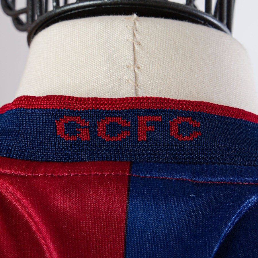 First shirt of the 2004/2005 season, in typical red-blue colours, with V-neck and short sleeves.