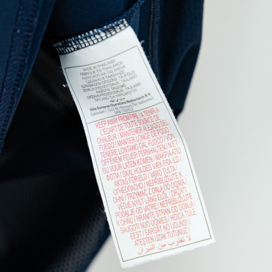 Blue model with golden and Bordeaux inserts. On the heart side the team crest, on the right side the heat-applied Nike logo. Below is the commercial sponsor Fly Emirates.