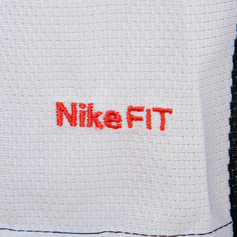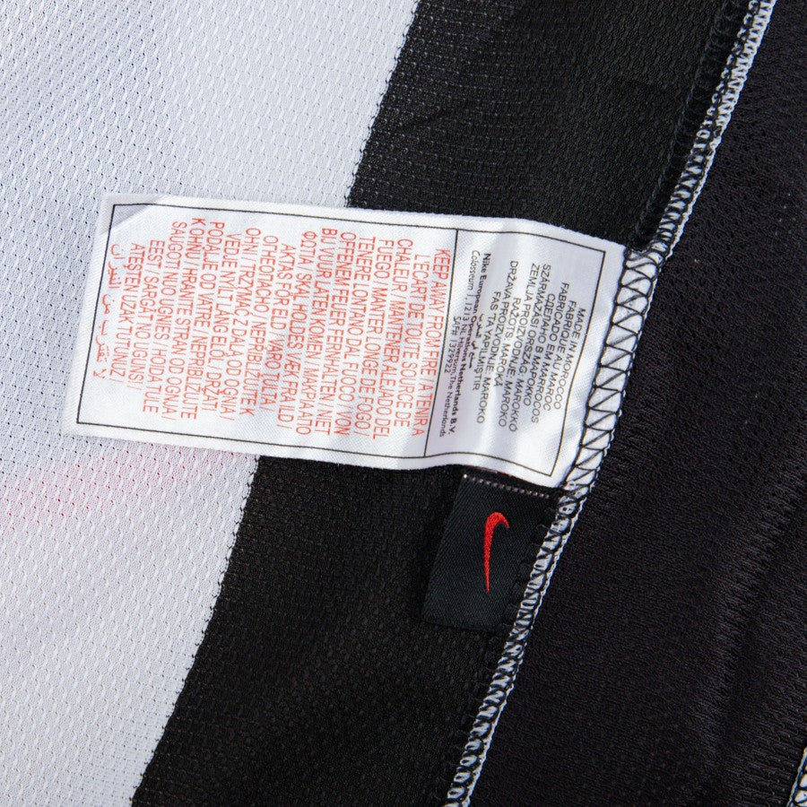 The product is clearly visible from the following photos. The shirt has short sleeves, with a V-neck collar, characterized by a white background crossed by the black of the vertical stripes, even if there are red inserts; the club logo is applied to the top left, while the red logo of Nike, technical sponsor, appears on the opposite side; below these elements, we find the commercial sponsor, NEW HOLLAND, with the additional wording FIAT GROUP.