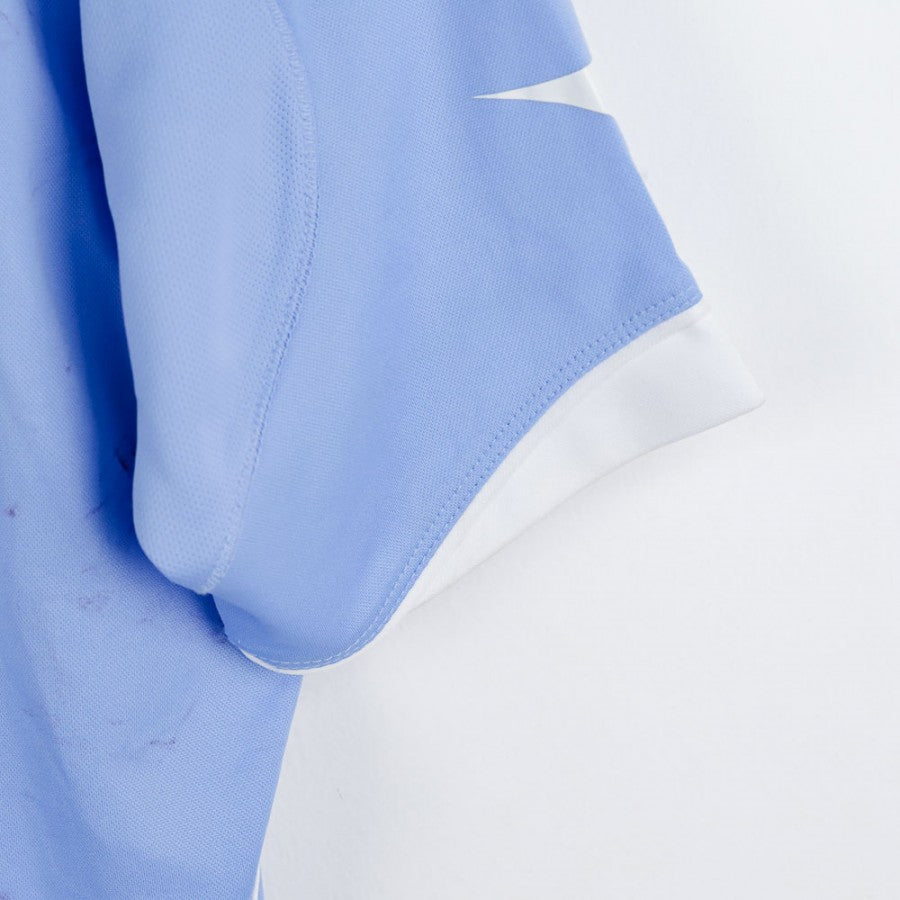 The shirt includes a V-neck collar with white accents matching the sleeves and stitching. Its technical fabric ensures comfort and lightness, making it an iconic and functional item for fans. Size: L.
