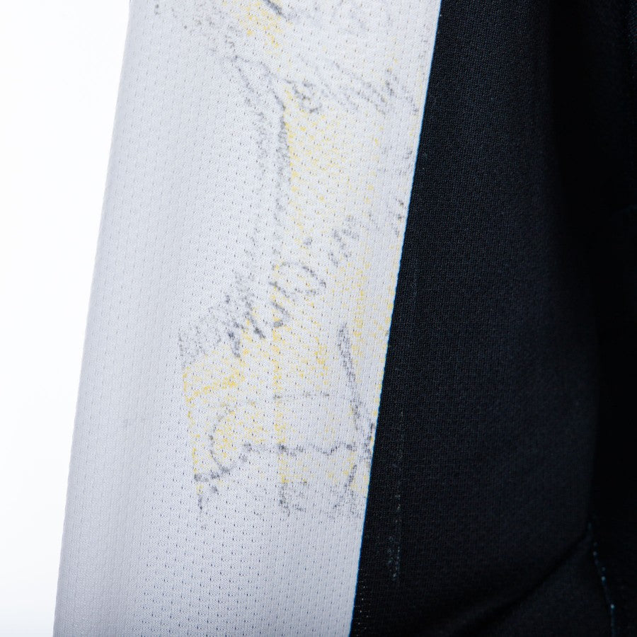 The product can be clearly seen from the many photos. The shirt has long sleeves and is characterized by the white background color and the black of the wide vertical stripes that cross it; the club logo is applied to the top left, while on the opposite side there is the yellow logo of Nike, technical sponsor; below these elements stands the commercial sponsor, NEW HOLLAND FIAT GROUP.