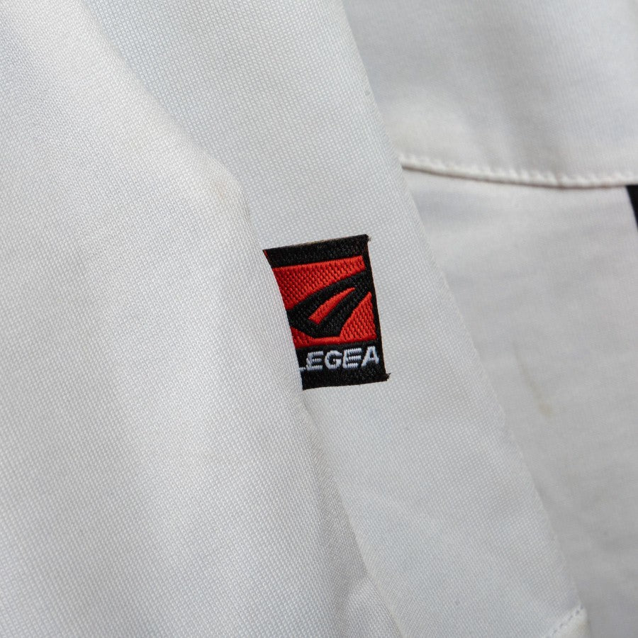 Vertical striped black and white color pattern. On the front we find the Legea Sponsor and the Team crest.