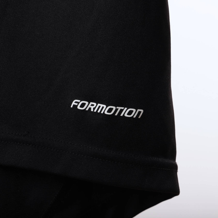 Black, long-sleeved goalkeeper model with elbow padding. There are decorative seams in red and padding at the elbows.