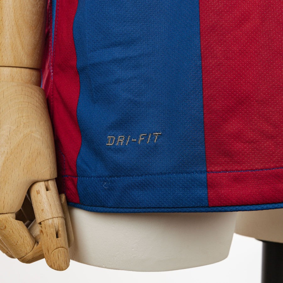The tunic is characterized by vertical blue and red stripes and a yellow collar, a color that also defines the edges of the sleeves. The emblem of the Barcelona sports club is sewn on the top left, while the logo of the technical sponsor Nike is shown in yellow on the right side and the gold Unicef littering settles in the center. The symbol sewn in the center of the chest, on the other hand, reminds us that the Spanish team was the winner of the 2009 FIFA UAE Club World Cup. Two different patches are sewn on both sleeves, which enrich the football club's shirt with details. On the back it is personalized by the number 7 David Villa.