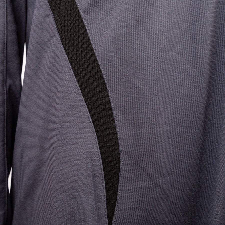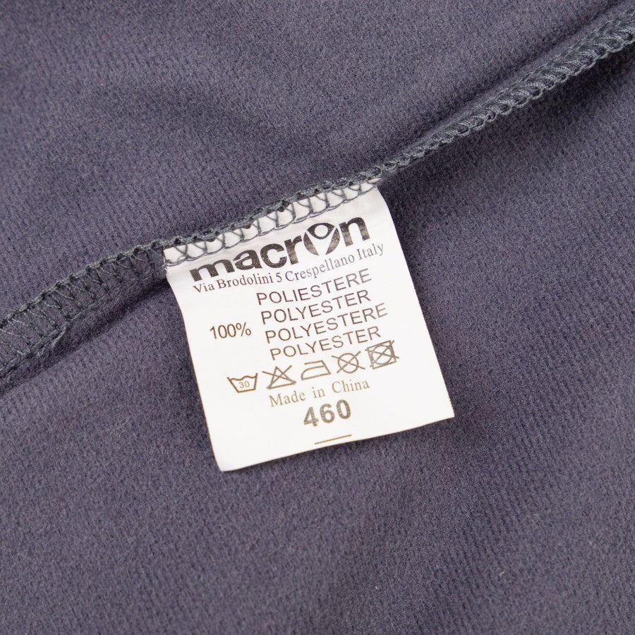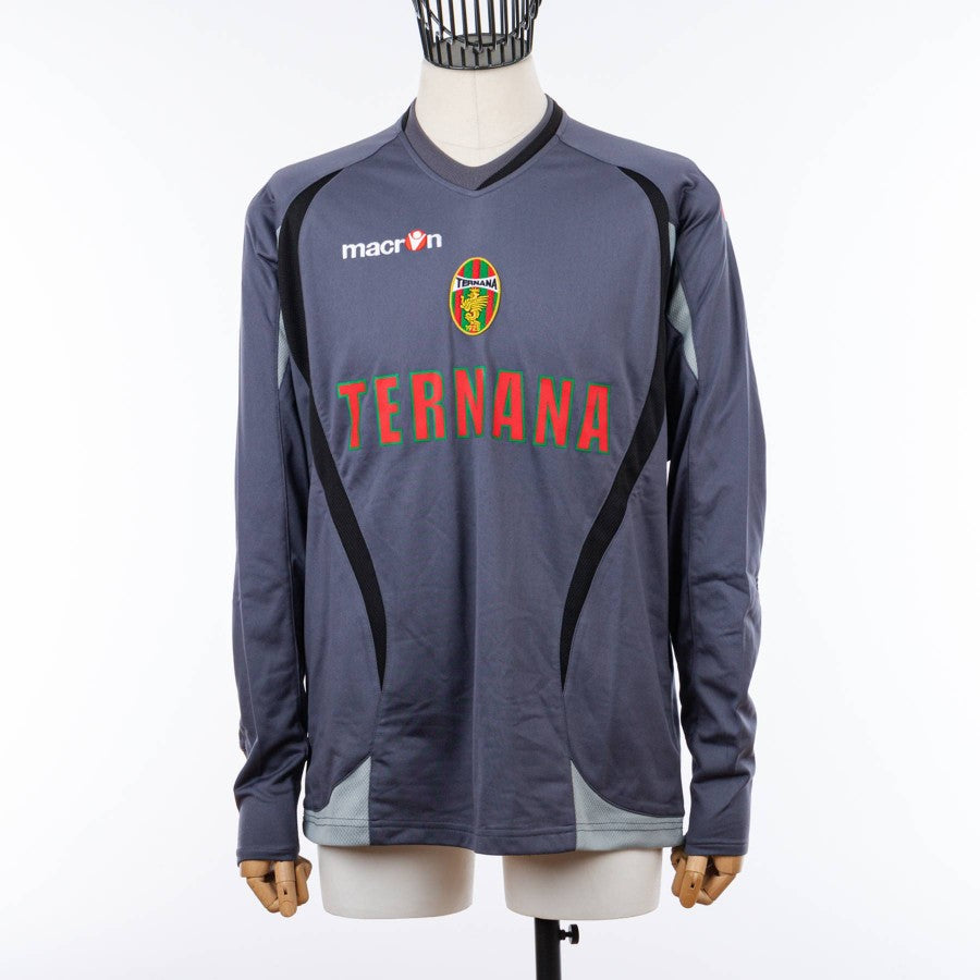 Gray long-sleeved model. The Ternana patch is embroidered in the center on the front and the logo of the technical sponsor Macron is embroidered on the right, also present on the sides of the kit. The Macron lettering is embroidered on the back of the neck and printed in a larger format further down.