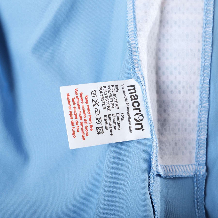 The long-sleeved shirt with V-neck is light blue and is characterized by white inserts on the two sides. Lazio patch and Macron writing are embroidered, while the tricolor cockade is sewn. On the back are printed lettering HERNANES and the number 8 in light white plastic. Finally, the Serie A patch is applied on the right sleeve.