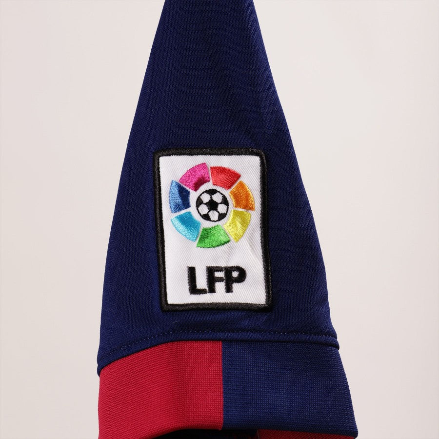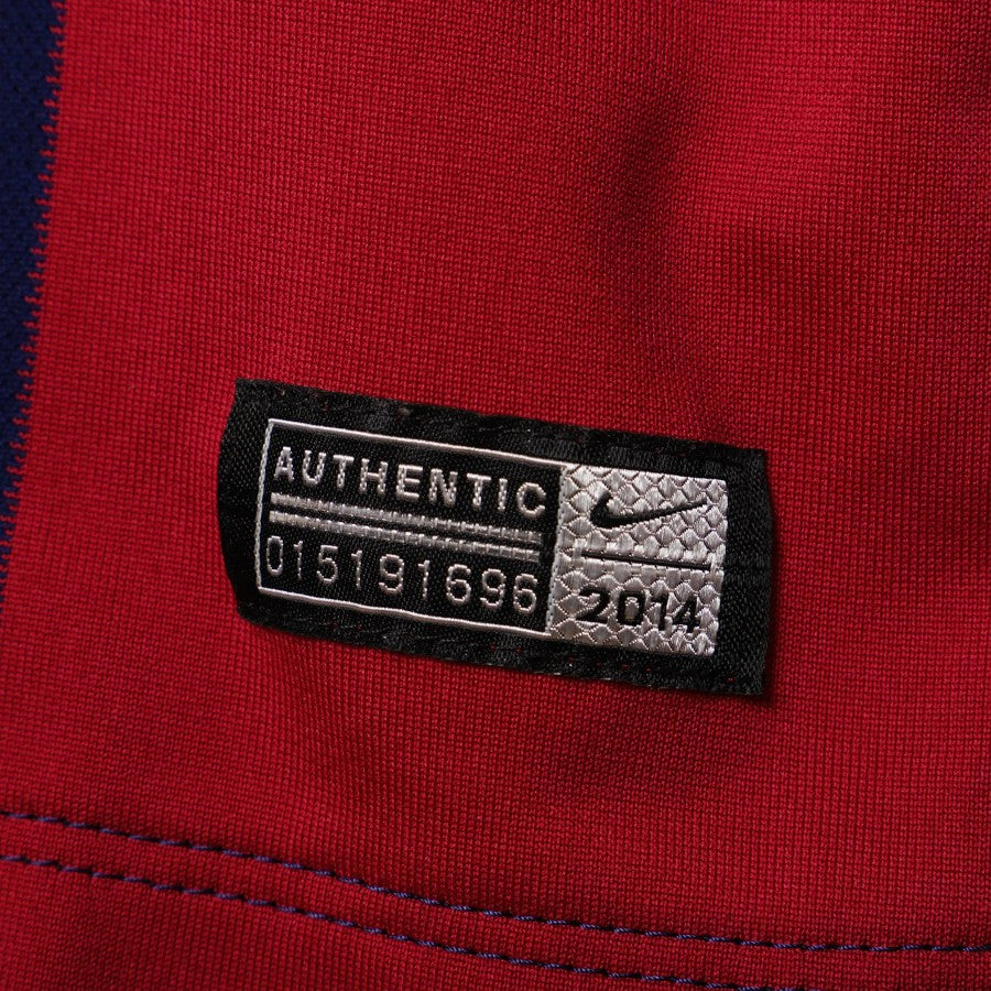 Barcelona home jersey, season 2014/2015. Model round-neck and half sleeve. On the front are embroidered the team patch on the heart side, and the logo of the technical sponsor Nike on the right. At the center, applied in light plastic, the commercial sponsor Qatar Airways. On the back are printed lettering NEYMAR JR and the number 11, in addition to the second commercial sponsor Unicef. On the right sleeve is embroidered the patch of the Spanish League.