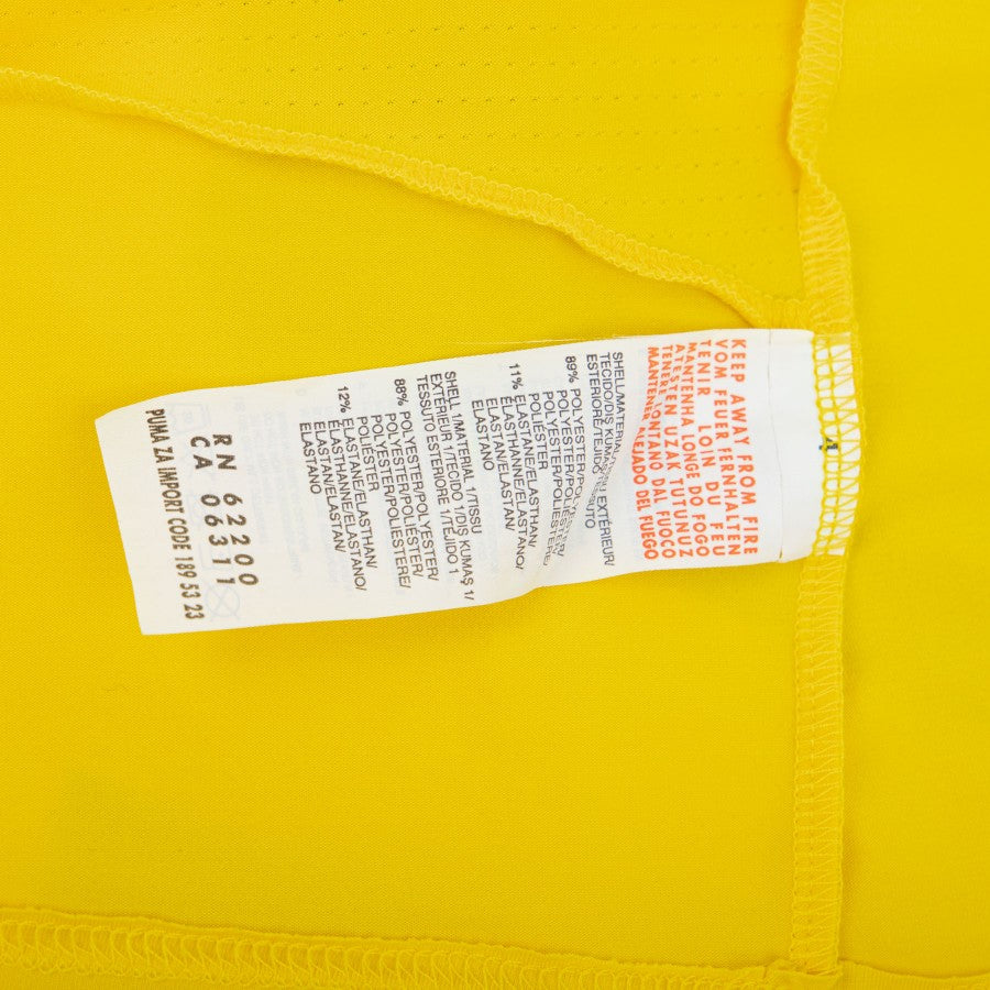 The design features the traditional yellow color with black detailing in a crew neck model. The club crest shines on the left chest, accompanied by the two stars that testify to past triumphs. On the opposite side, the Puma logo.