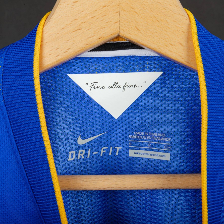 The uniform has short sleeves in blue. Nike logo on the right, the Juventus emblem is positioned on the heart and the shield is centered. Just below, the commercial sponsor Jeep emerges.