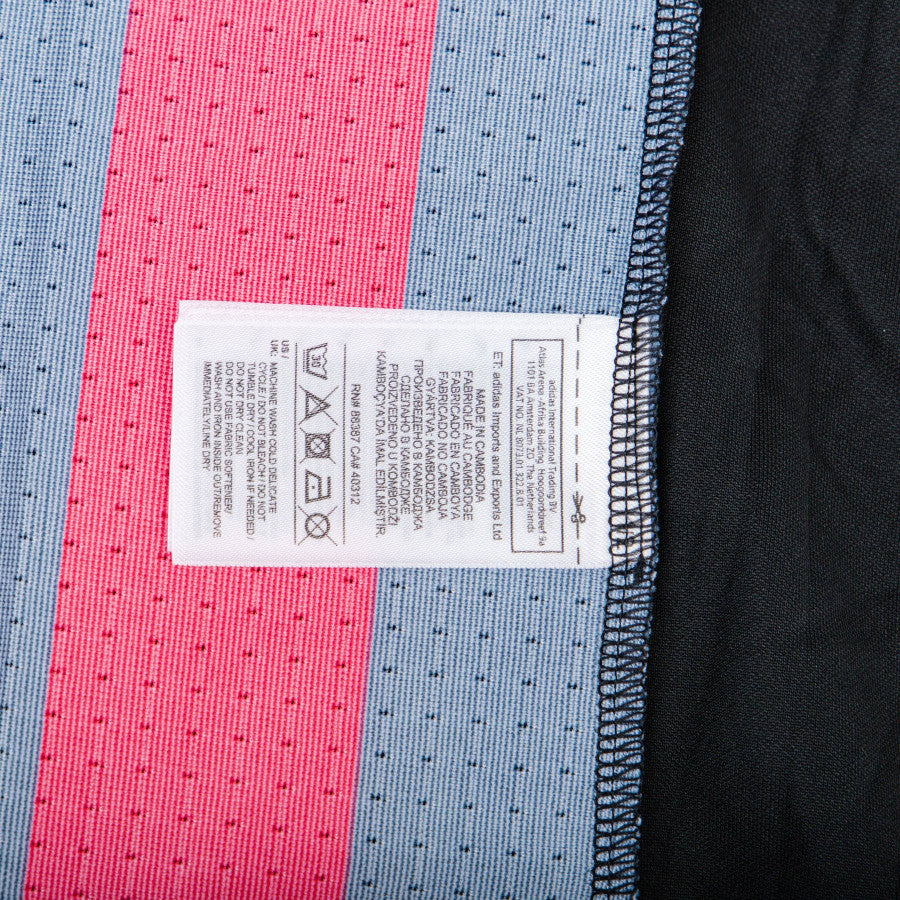 The product can be admired well from the various photos. The shirt has short sleeves and the main colors are the red background and the black of the vertical stripes that cross it; the club logo is applied to the top left, while on the opposite side is the white one of Adidas, technical sponsor; below these, the commercial sponsor, also in white, Fly Emirates stands out.
