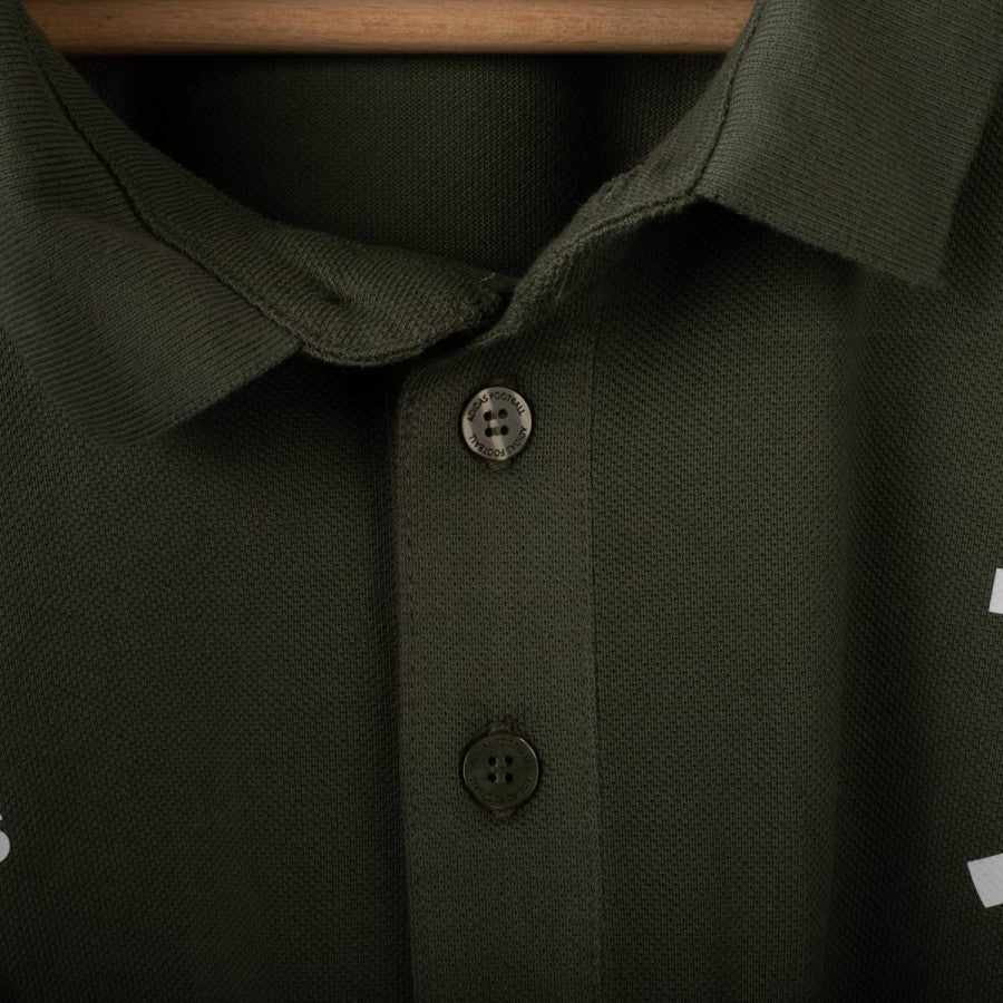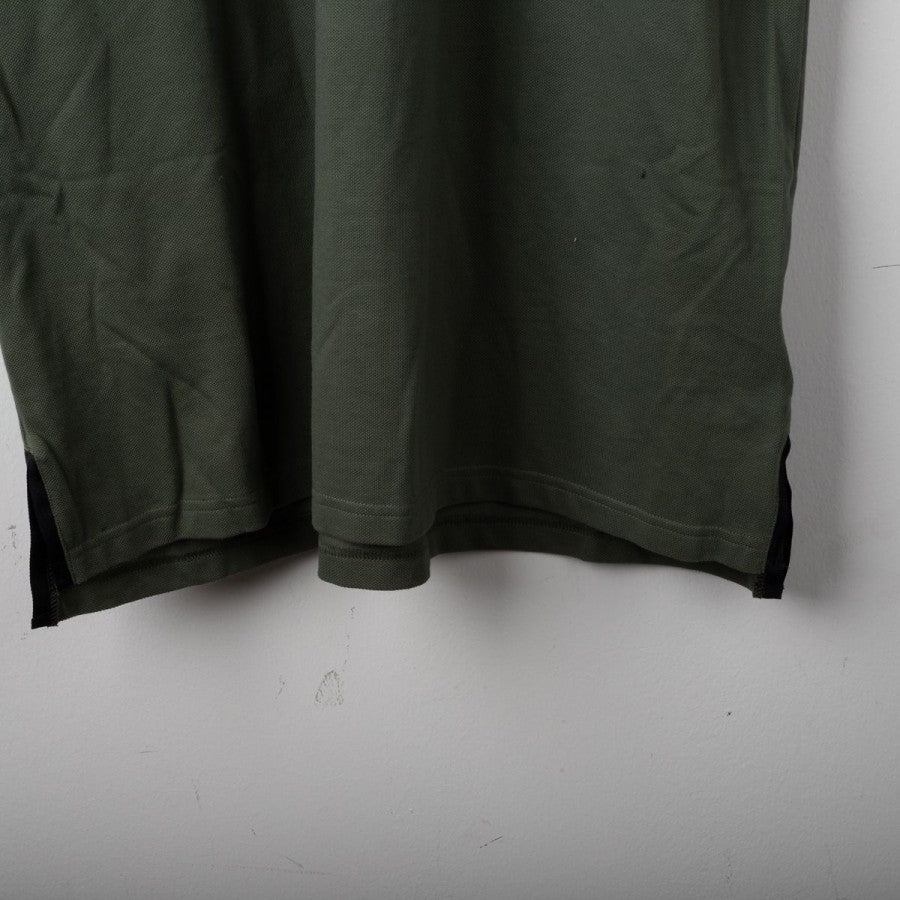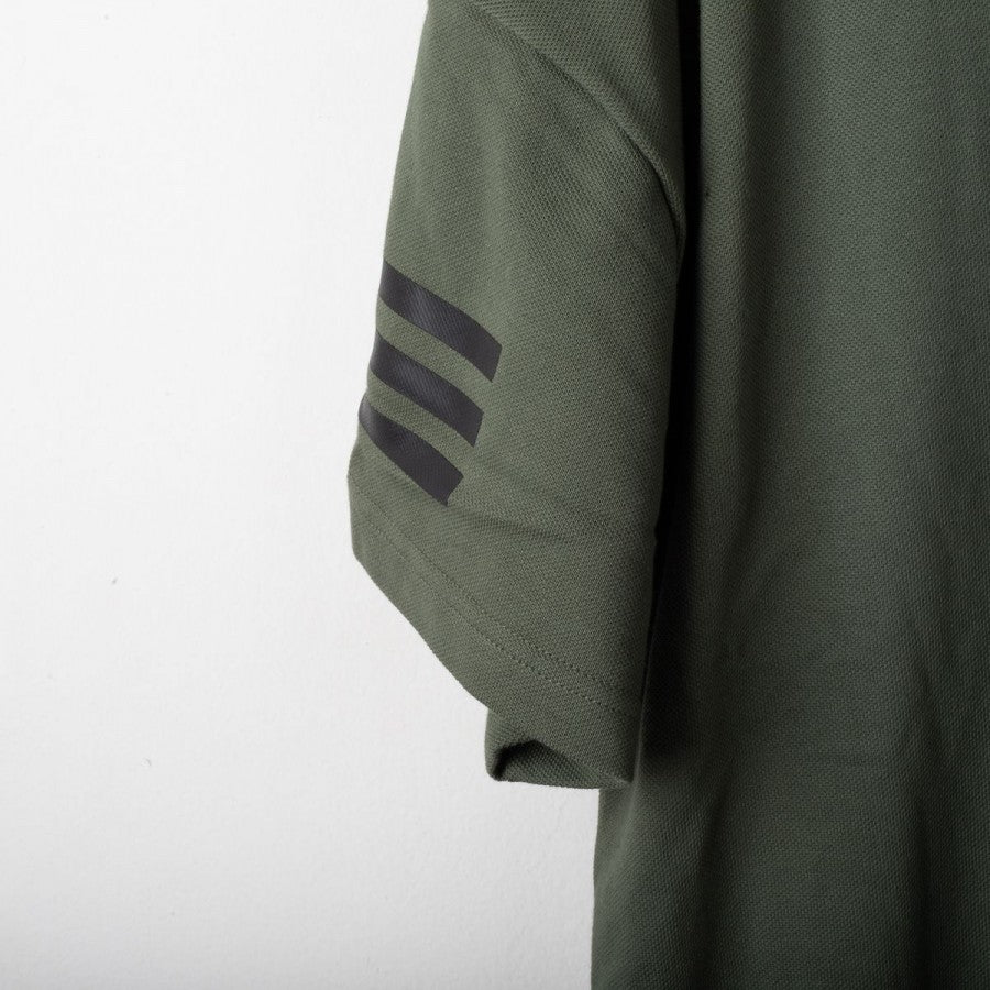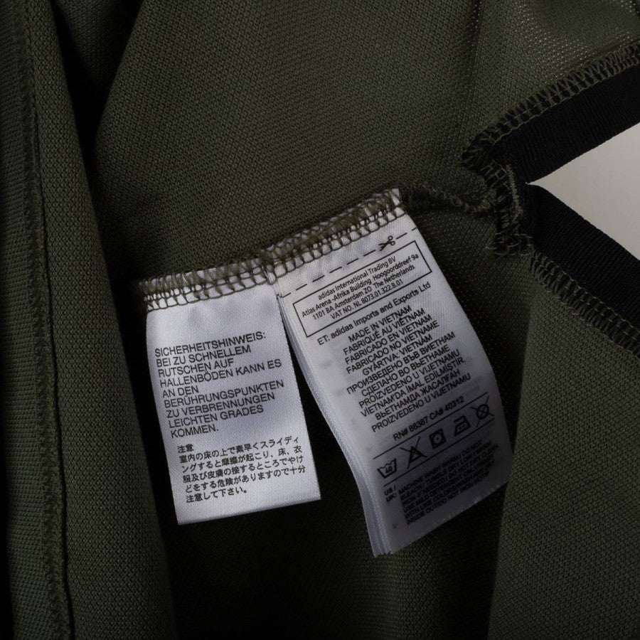 Official Juventus polo shirt from the 2017/2018 season, made by Adidas. Military green with black details, applied Adidas logo and Juventus crest. Number 10 applied below the logo, tonal black stripes on the sleeves and “Champions League” branding on the lower back. Two-button collar. The “0” in the number has two small holes. Size XL.