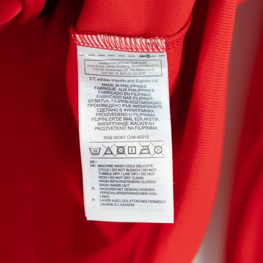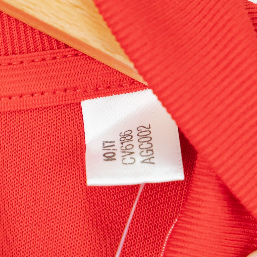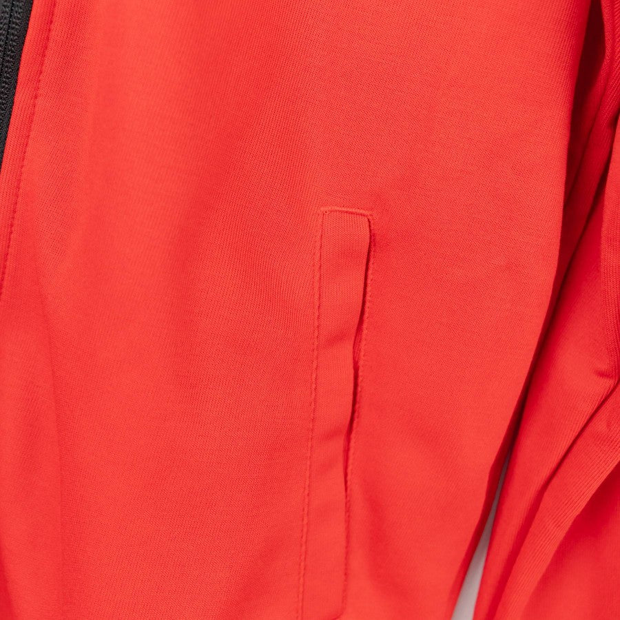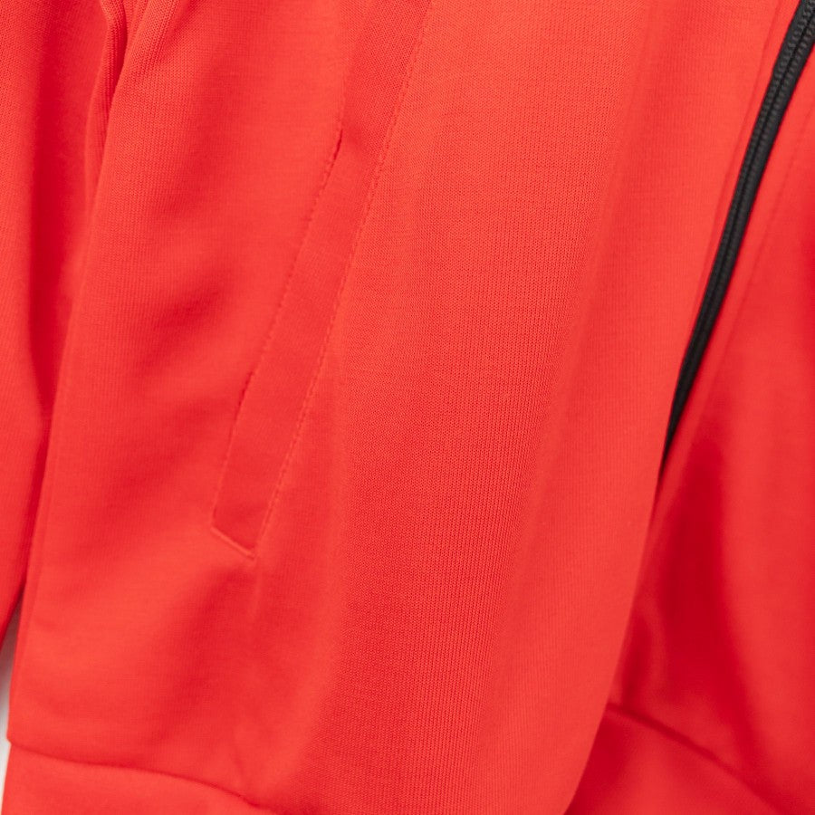 Red full zip model with side pockets. On the right we find the Manchester United crest, on the sleeve the Adidas logo.