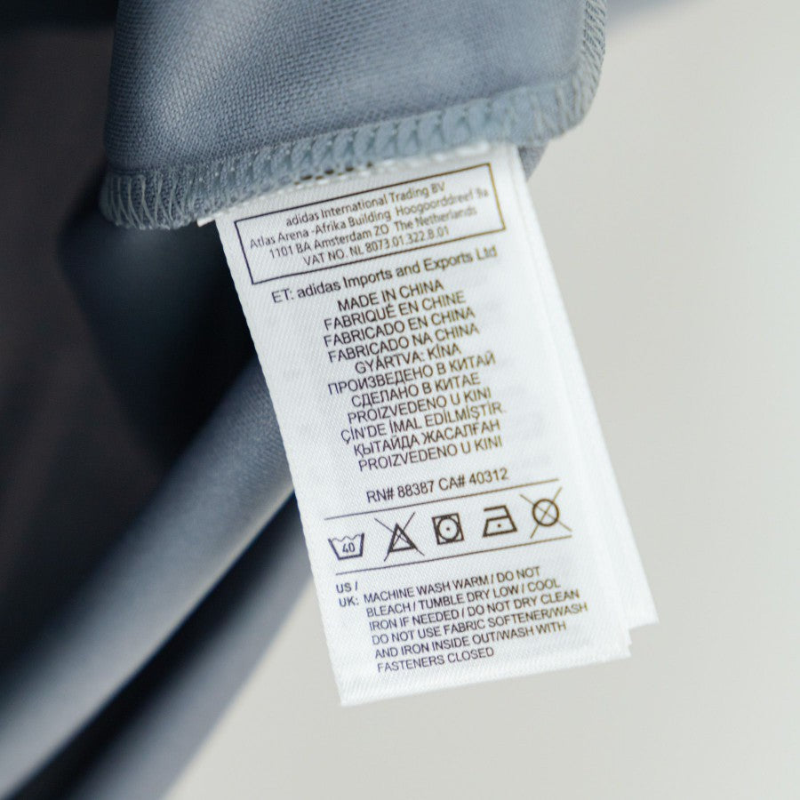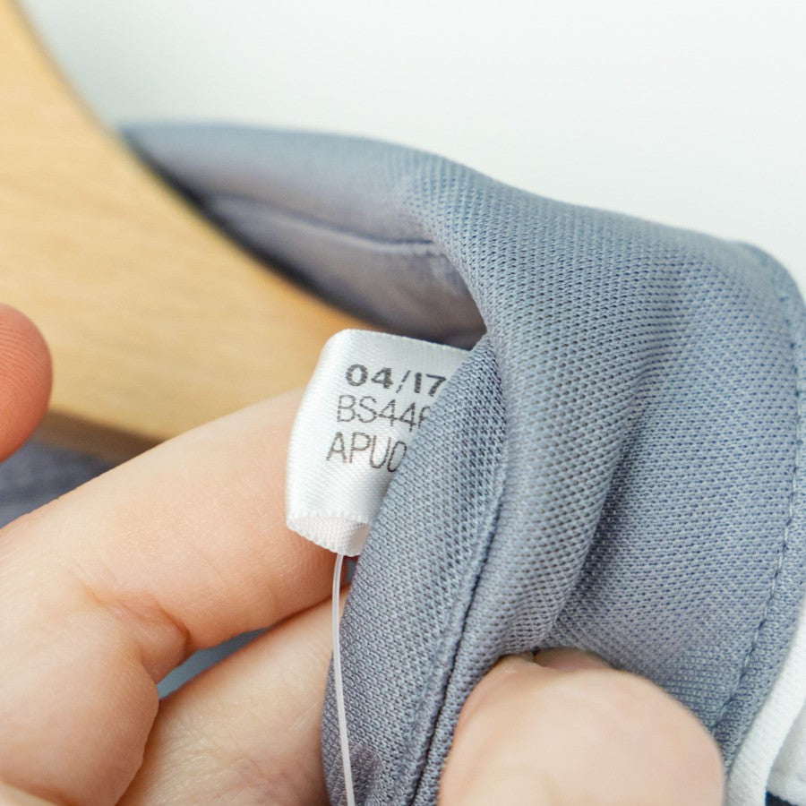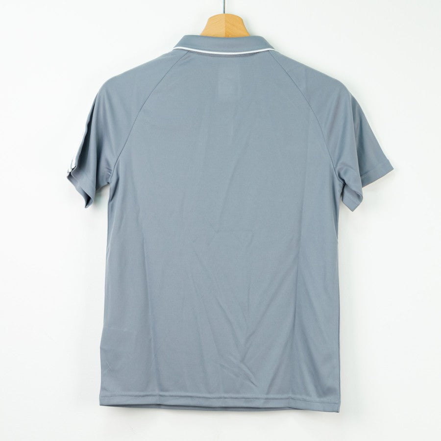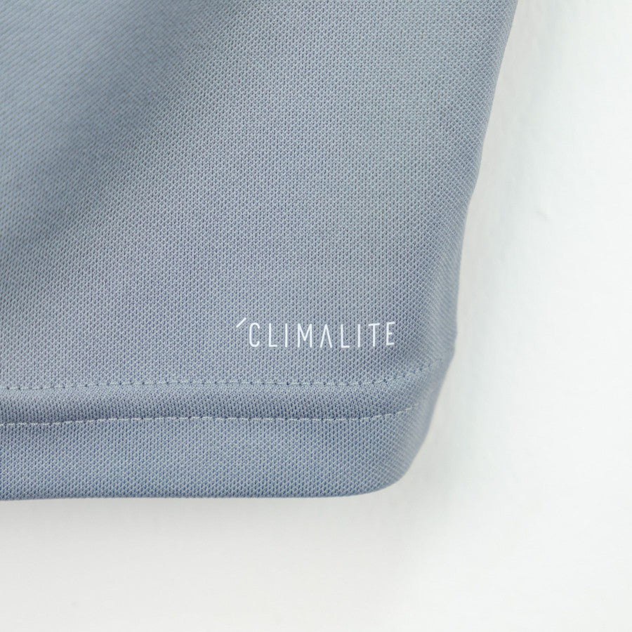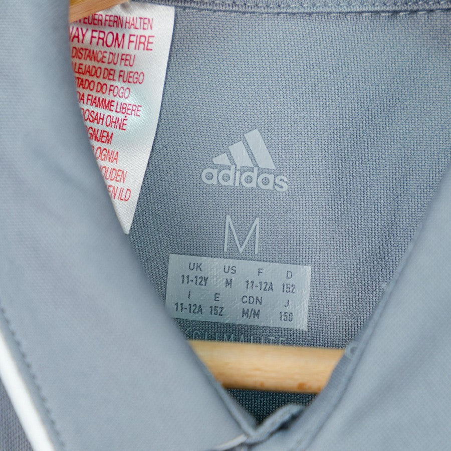 Model with polo collar with two buttons, gray with white inserts. On the heart side the team crest and the sponsor AON, on the right the Adidas logo.
