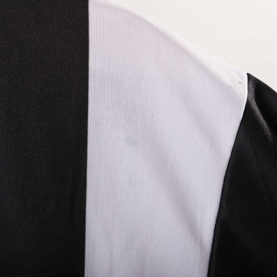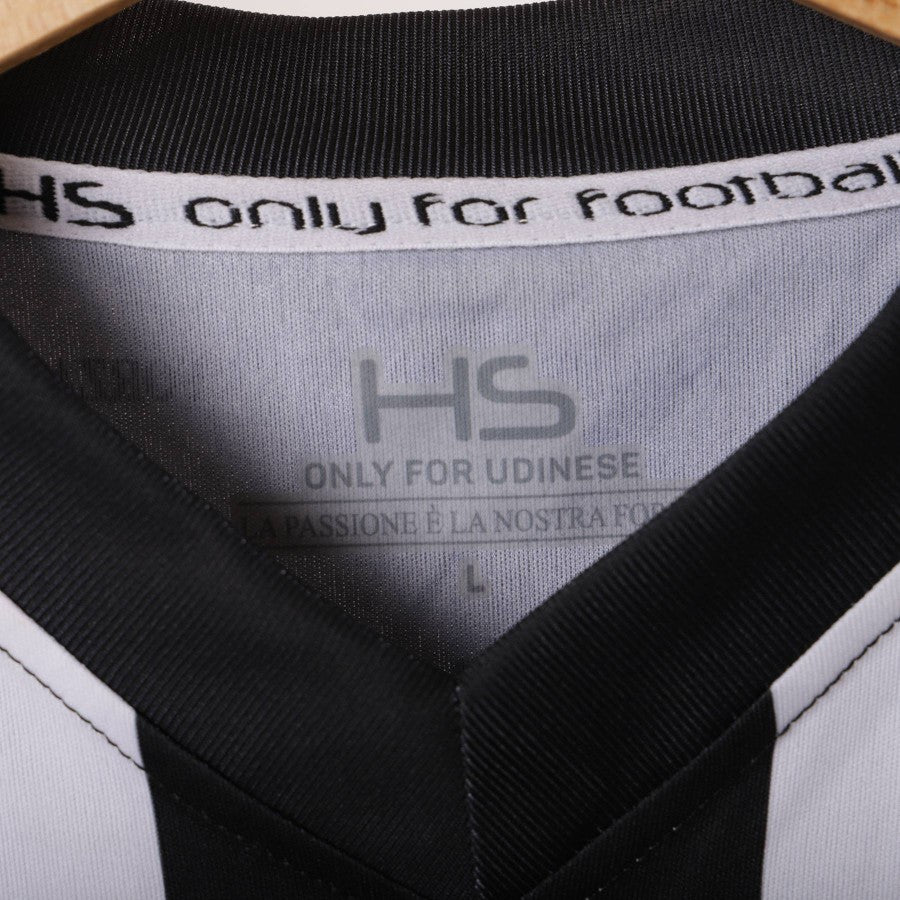 Udinese home version jersey, football season 2017/2018.Black and white model with short sleeves and V-neck. On the front is applied the patch of the team on the heart side, the logo of the technical sponsor HS on the right and, in the center, the commercial sponsors Dacia and Vortice. On the back, in addition to the customization LASAGNA 15, is applied the third commercial sponsor Magnadyne. Finally, on the right sleeve is applied the Tim Cup patch.