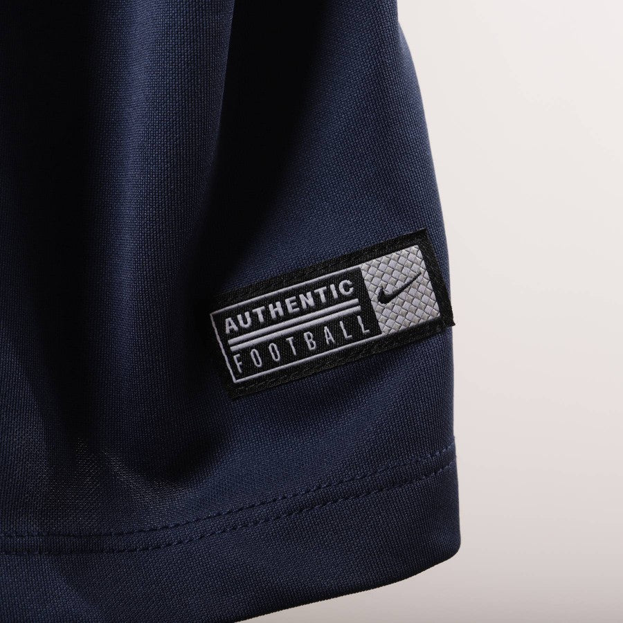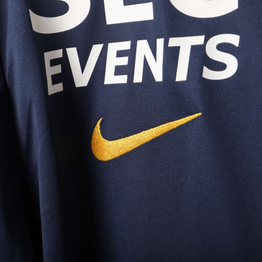 Hellas Verona third jersey, 2017/2018 season. Model in navy blue and yellow inserts with V-neck and half sleeves. On the front is applied the team patch on the heart side and the logo of the technical sponsor Nike is embroidered on the right. The commercial sponsors Sec Events and Metano Nord are also applied in light plastic. On the back are printed yellow lettering PAZZINI and the number 11, as well as the second commercial sponsor Changebet.it. Finally, the Serie A patch is applied on the right sleeve.