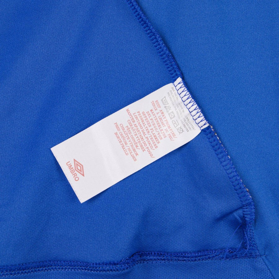 Blue short-sleeved home shirt model, what distinguishes the uniform is the presence of the band that surrounds the sleeves with the iconic Umbro diamonds, just like in the shirts used from 1975 to 1982. The extra touch is given by the fabric of the body with melange effect and white collar with two-button closure. The logo of the technical sponsor Umbro and the Everton club crest are embroidered on the front. At the center applied the commercial sponsorship SportPesa. On the back there is also the Prince Rupert's Tower, loudly requested by the fans and the customization applied Sigurdsson 18