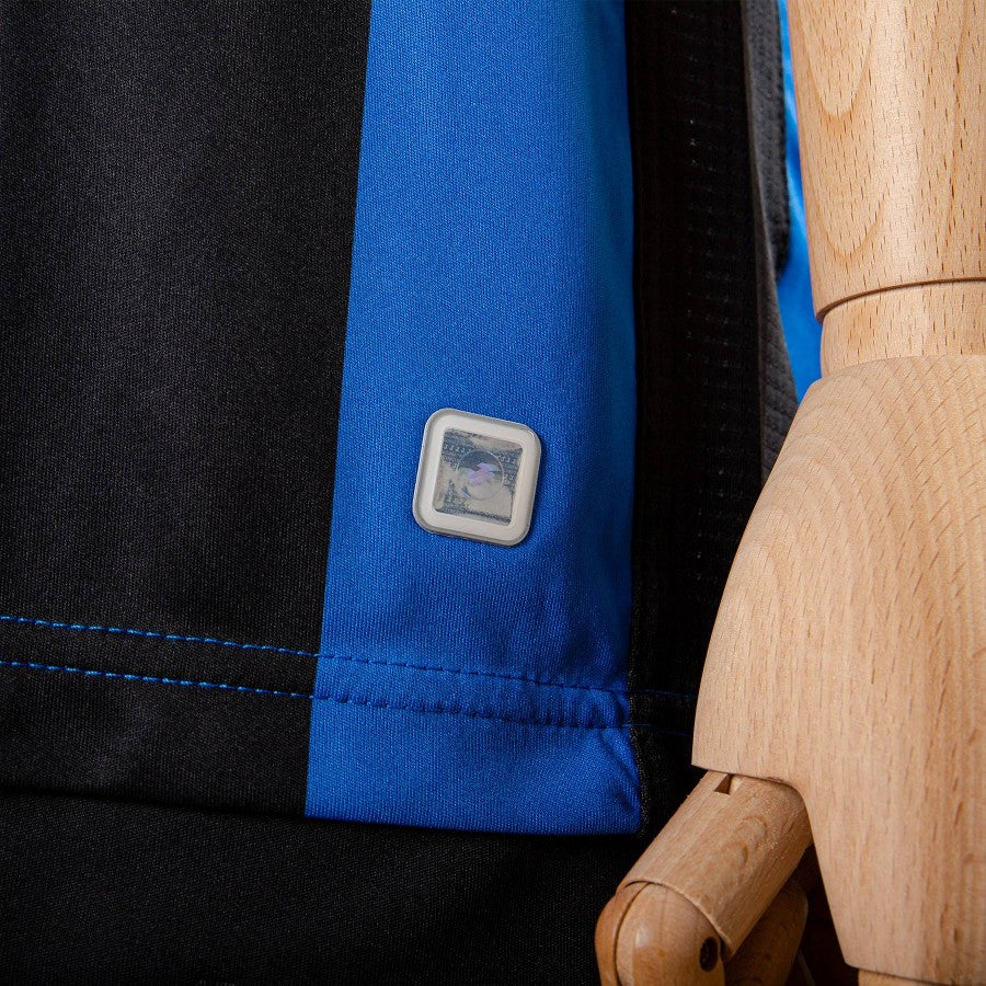 Nerazzurra model with short sleeves and crew neck with elastic insert. On the front are applied in light plastic, the commercial sponsors U-power and Radici Group, while are embroidered the patch of Atalanta in the center and the logo of technical sponsor Joma on the right. On the back, are printed lettering GOMEZ and the number 10, in addition to the commercial sponsor Elettrocanali. Finally, the Serie A patch is applied on the right sleeve and the commercial sponsor AutoMha on the left.