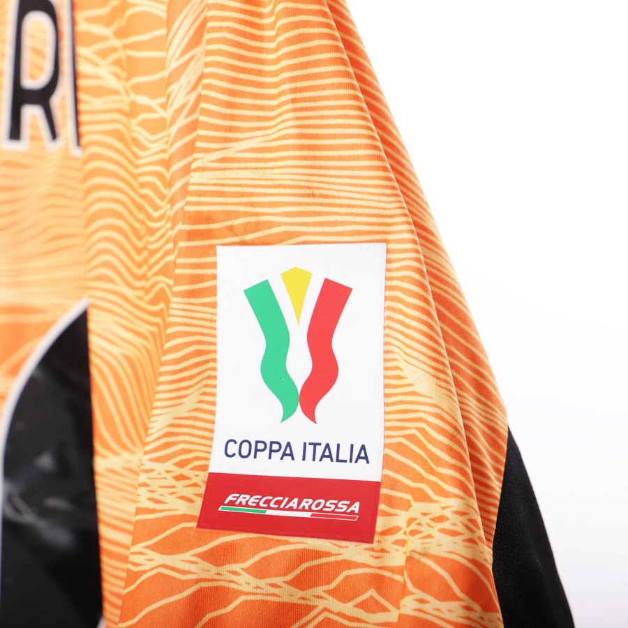 On the heart side of the front is the Juventus club logo and on the right the Coppa Italia rosette and below the logo of technical sponsor Adidas.