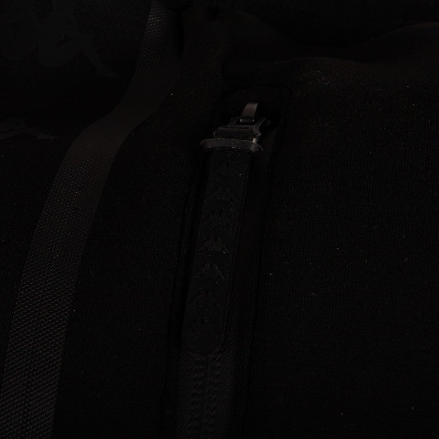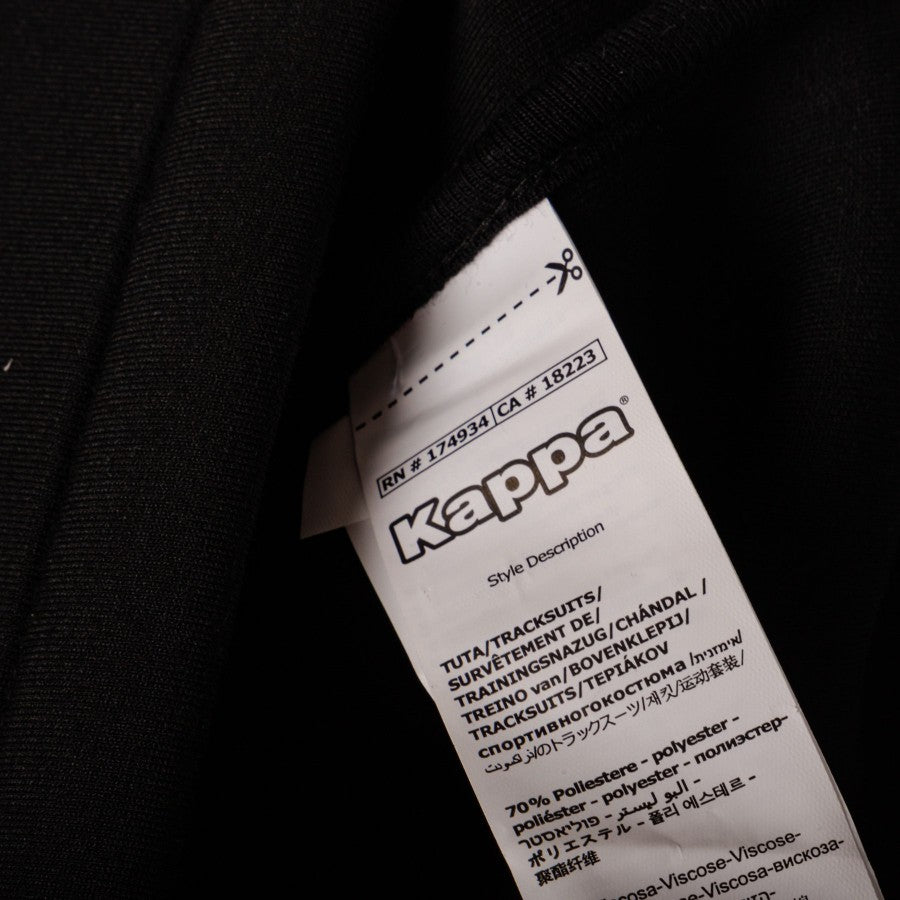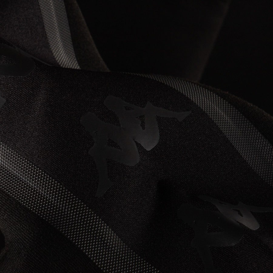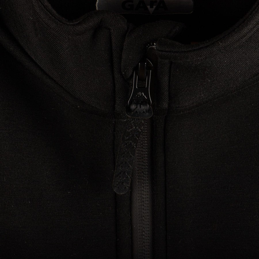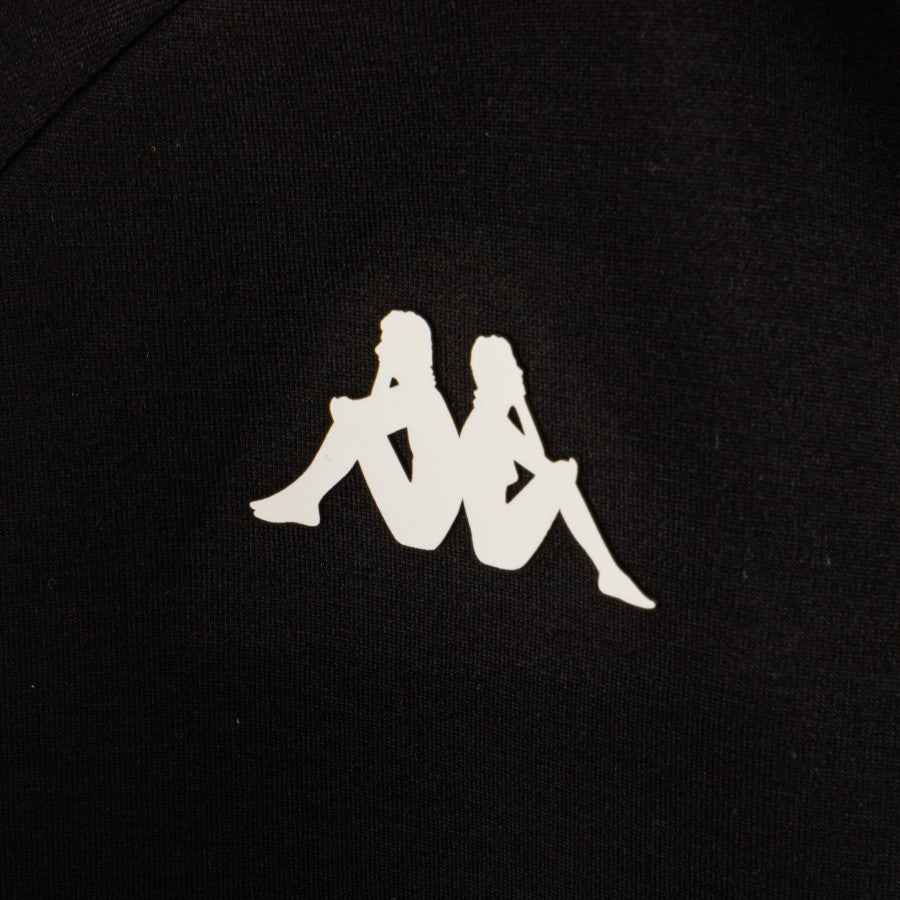 Black model, complete with trousers and full zip sweatshirt. Heart side heat-applied AS Monaco coat of arms in white, Kappa logo on the right. On the side it features a Kappa logo pattern.