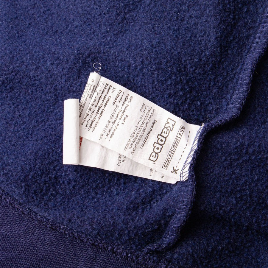 Full zip hooded sweatshirt with adjustable drawstring. Navy blue colour with grey inside of the hood. On the front, the Empoli patch is hot-stamped on the heart side, while the commercial sponsor Computer Gross is on the right. Empoli lettering is printed on the hood. Kappa lettering in embroidery and, on the back, we find other commercial sponsors, including Sammontana.