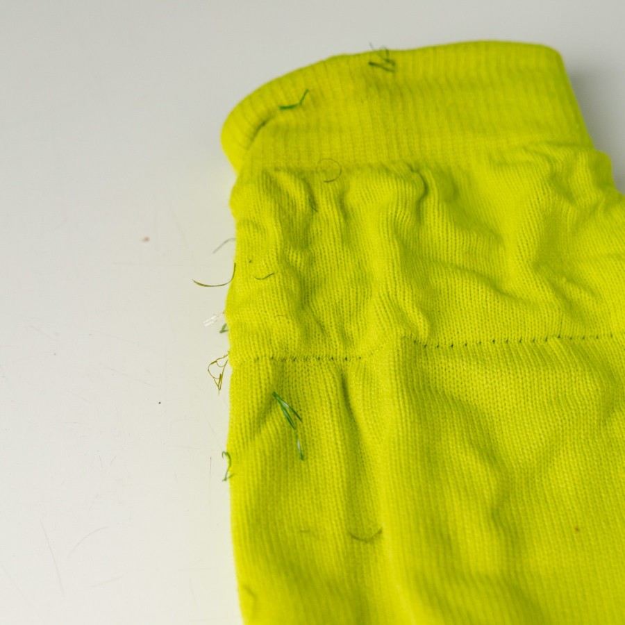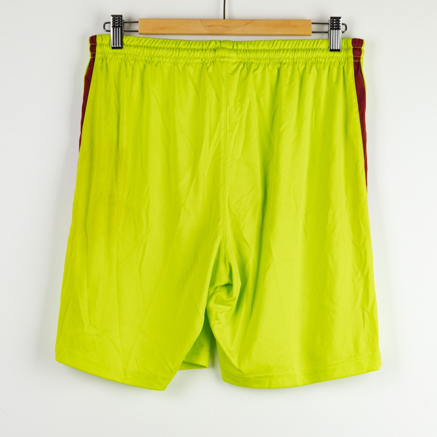 Fluorescent green shorts with emblem on the right and Joma logo on the left. Socks of the same model with garnet colored inserts.