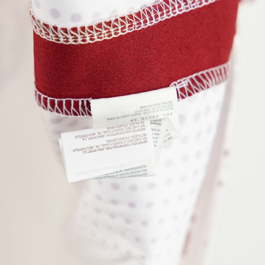 White shorts with emblem on the right and Joma logo on the left. Socks of the same model with garnet colored inserts.