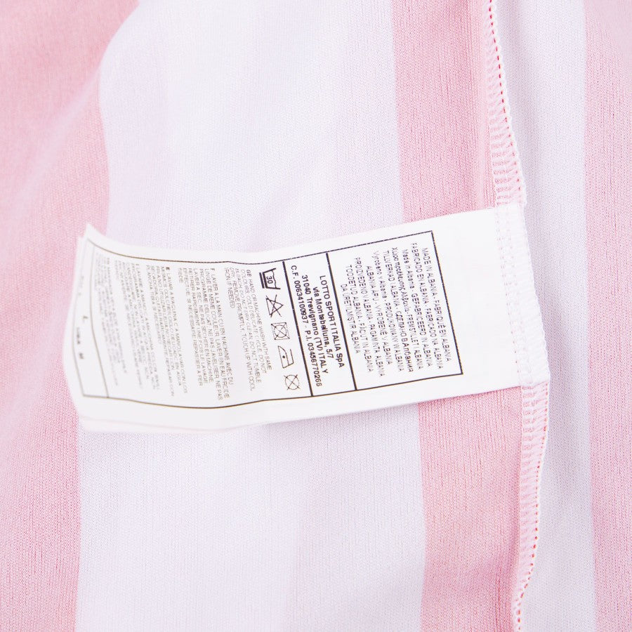 The Vicenza jersey has vertical red and white stripes, with the edges of the sleeves and crew neck in red.