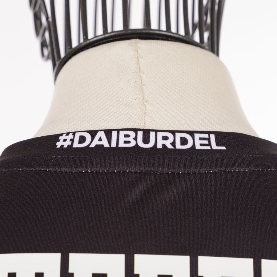 The Cesena jersey is characterized by a bold black and white inserts on the shoulders. The emblem of the sports club is sewn on the left side, the logo of the technical sponsor Mizuno is applied to the right side and the brand of the commercial sponsor PLT puregreen is evident in the center. On the back of the neck there is the lettering '#DAIBURDEL' and on the back the print of the personalization of the number 5 Steffè.