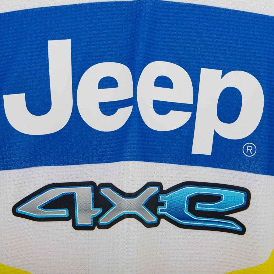 Short-sleeved model, with yellow, blue and white dominants, is a triumph of colors. On the heart, the Juventus emblem with the iconic blue stars. The right side houses the technical sponsor Adidas in white and yellow, with the Coppa Italia just above. Below, the Jeep 4xe sponsor. The sleeves are enriched by the Serie A patches and the sponsor Bitget.