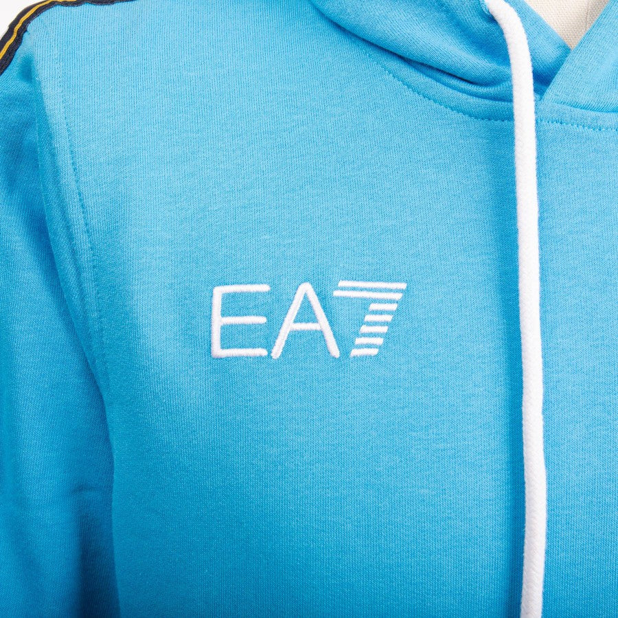 SSC Napoli logo, EA7 and golden Maradona silhouette on the front.