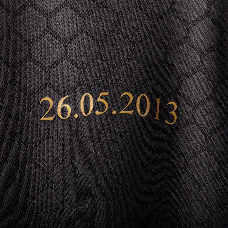 The shirt is mainly black, with some gold inserts. On the front we find: on the left the Lazio coat of arms, on the right the Mizuno logo and at the bottom the commercial sponsor Binance. In the center is the date 05.26.2013, to celebrate the 10th anniversary of the victory in the Italian Cup against Roma.