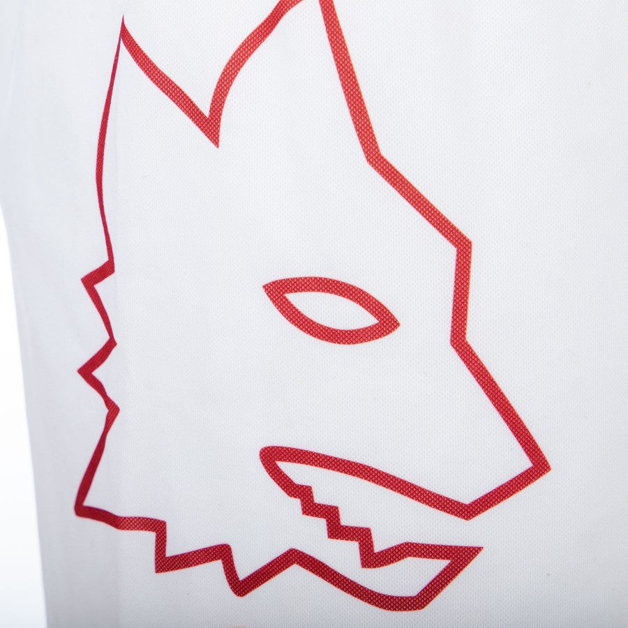 The product is well exposed by the photos relating to it. The shorts are mostly white; at the height of the pelvis we have two small red horizontal bands interspersed with a larger, yellow one; the club logo and the black Diadora logo with related wording are applied at the bottom left, while on the opposite side, secluded, there is the stylization of a large wolf's head with red edges, applied to the weft of the fabric, which continues in the rear area of the article.