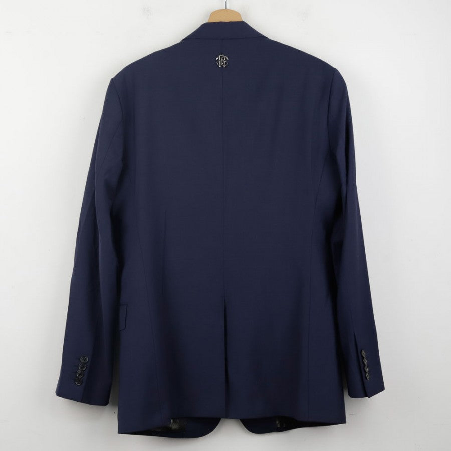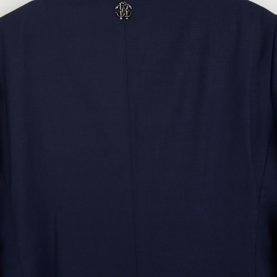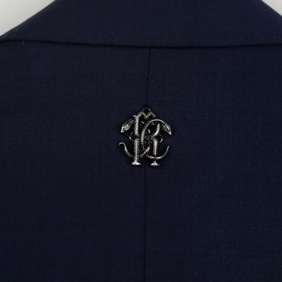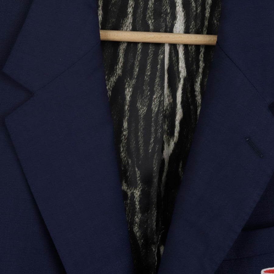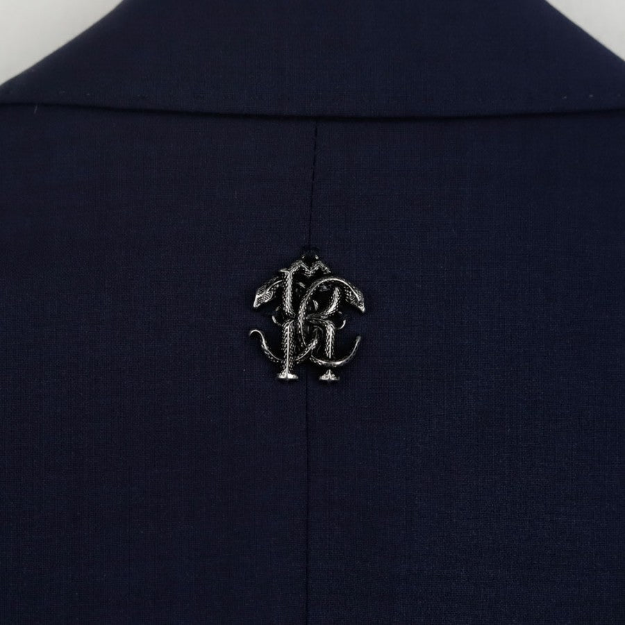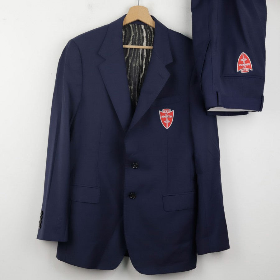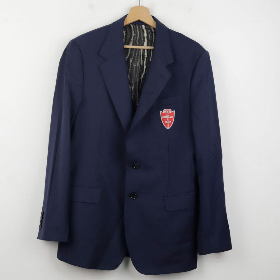 Official AC Monza full suit from the 2021/2022 season, designed by Roberto Cavalli. The set includes a jacket and trousers, featuring the iconic animal print lining, a hallmark of Cavalli's style. The Monza crest is placed on the jacket’s chest and trousers. A metallic Roberto Cavalli monogram is applied on the back. Size 48.