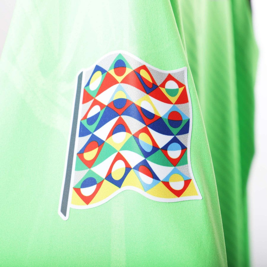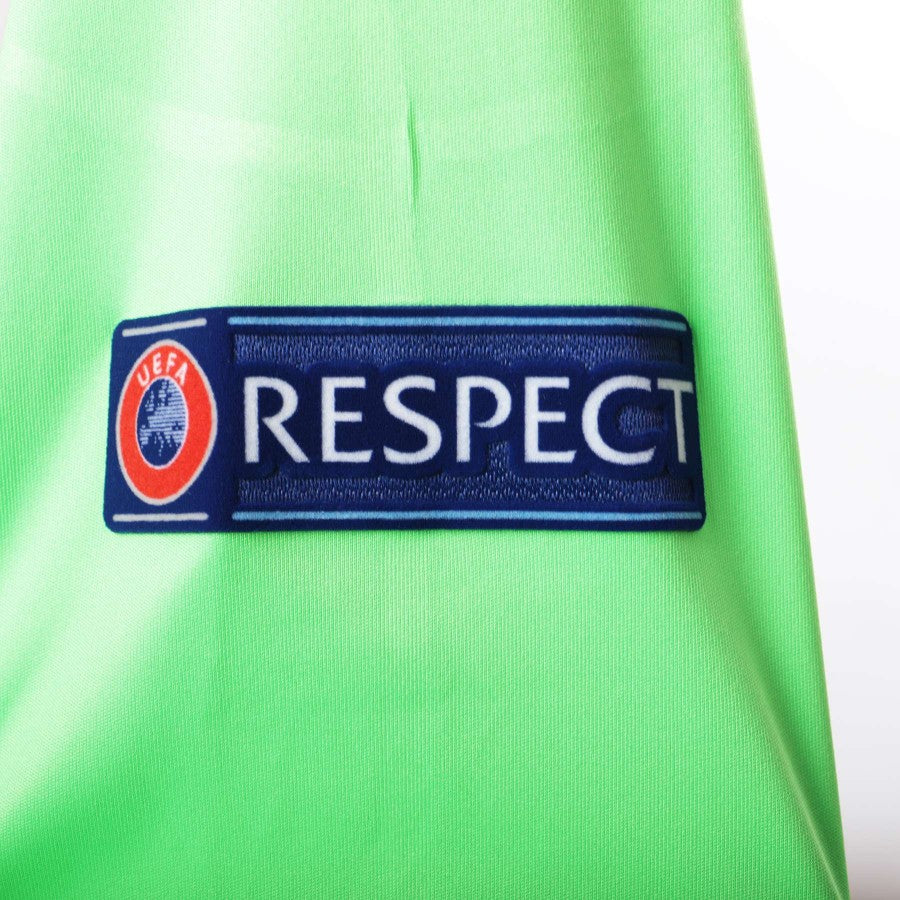 Albania jersey manufactured by Macron in green color and long sleeve. V-neck and team patch applied heart side. Embroidered Macron logo. The jersey is also personalized BERISHA 1 and is complete with Respect patch on the left sleeve.