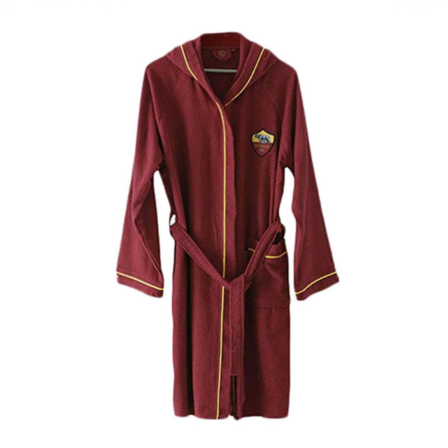 Official AS Roma kids’ bathrobe made of soft burgundy micro terry fabric with yellow trims. Features the embroidered club crest on the chest, waist belt, and hood for extra comfort after bath or shower. Lightweight, absorbent, and easy to wash — perfect for young Giallorossi fans.