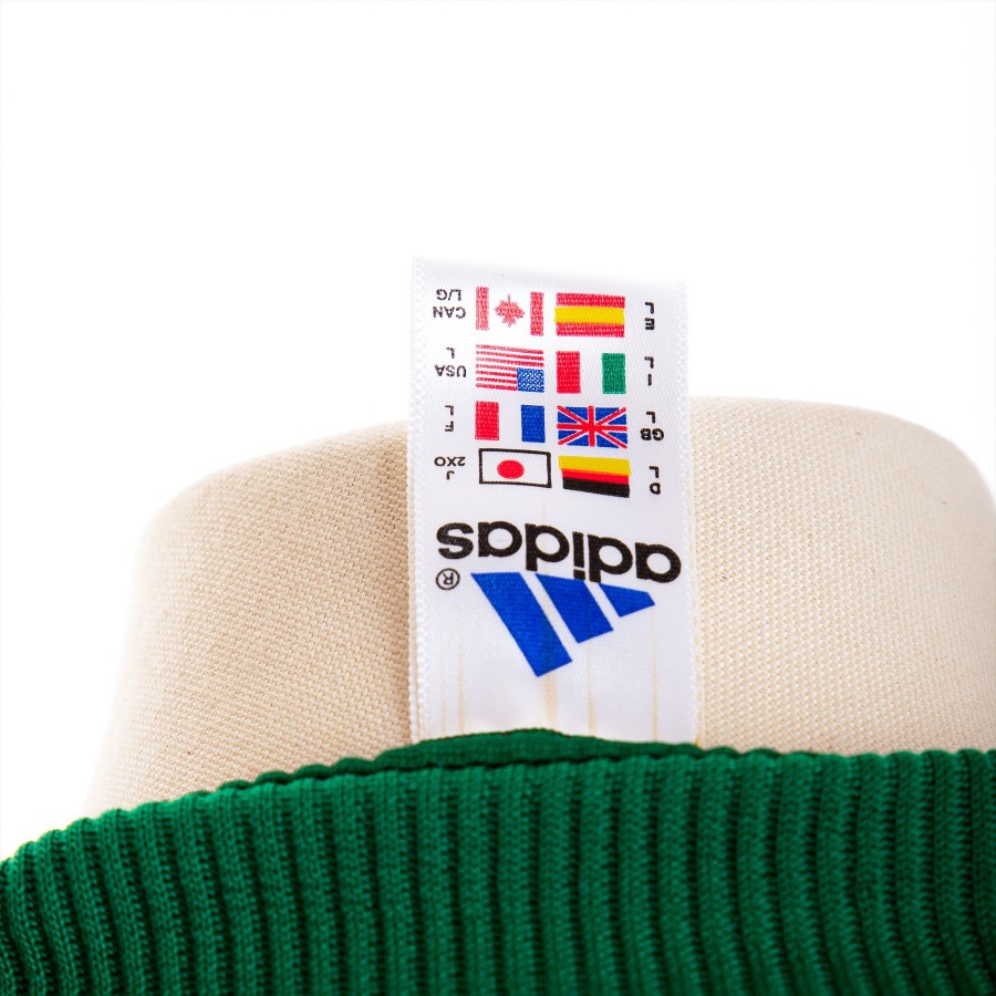 Short-sleeved green/yellow competition jersey of Australia used for the 1998/2000 World Cup. The World Cup logo is embroidered on the heart side, while the technical sponsor is sewn on the bottom right side. The Adidas logo is applied to the center of the chest.