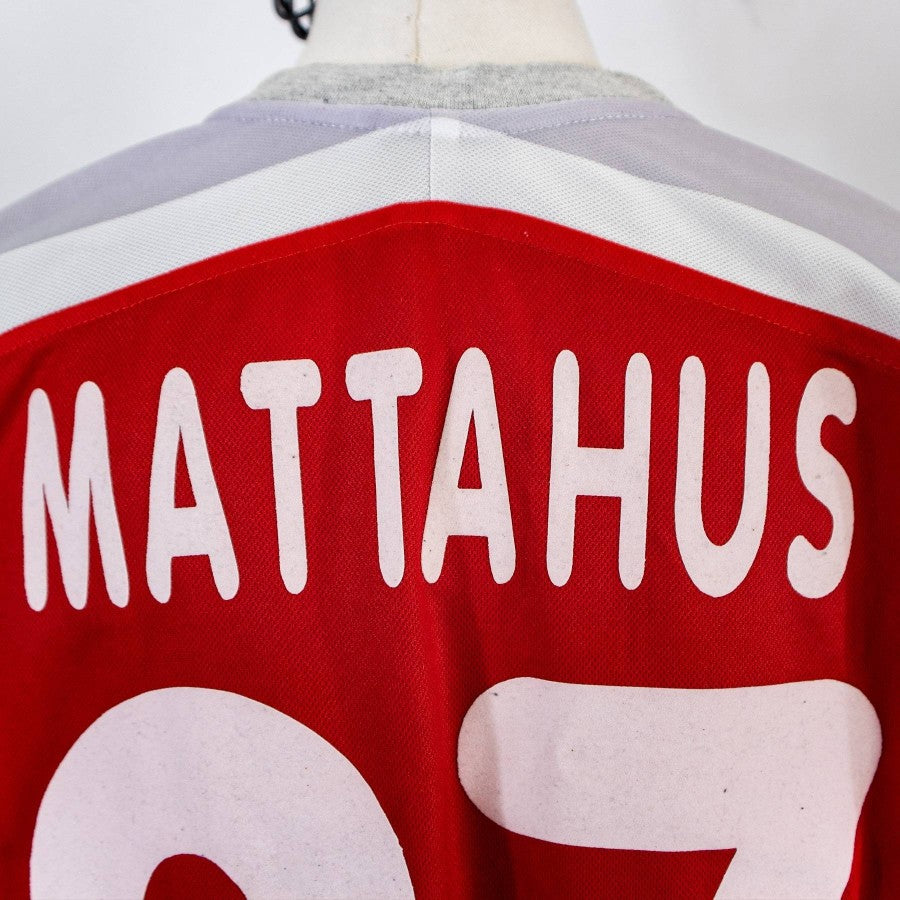 This jersey was worn in Diego Armando Maradona’s farewell to football match by the "Equipo de las estrellas" team. Selection of great champions from all over the world who took part in the match on November 10, 2001 played at the Bombonera stadium in Buenos Aires. The match ended 6-3 for the Argentina national team. Name Mattahus and number 27 printed in white. On the back of the jersey the inscription Homenaje a Diego Maradona is printed on the bottom