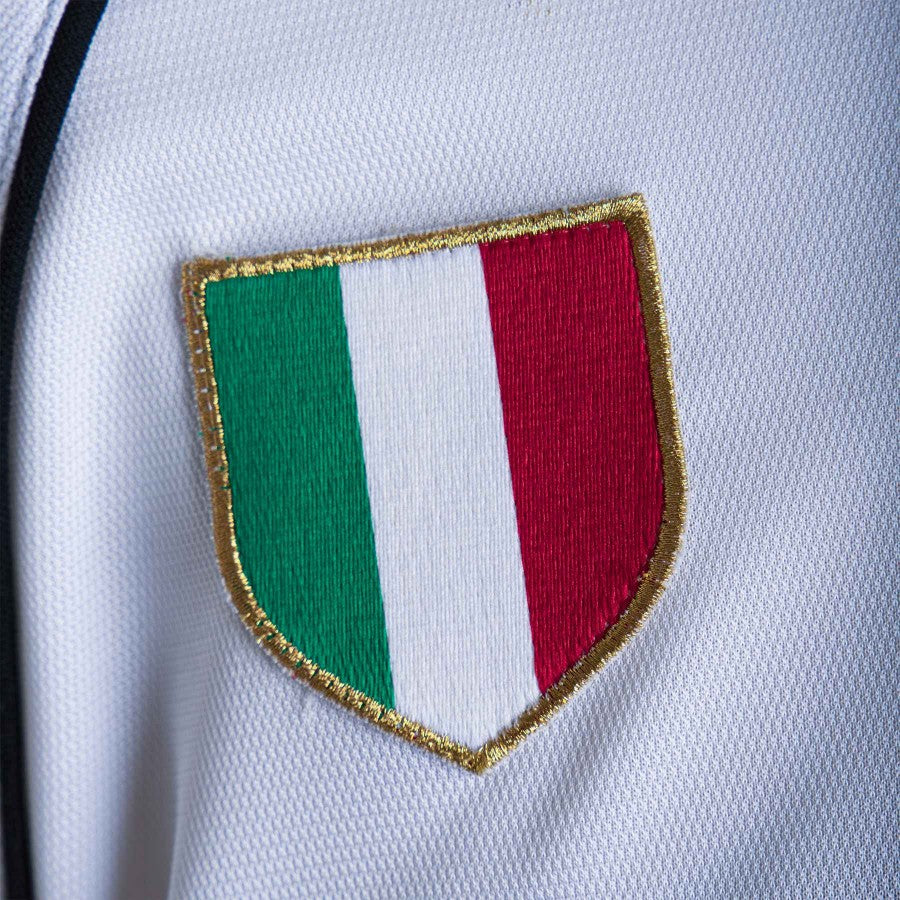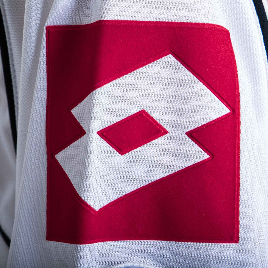 Juventus Away Jersey season 2002/2003 short sleeves. On the front are sewn on the chest Juve logo and the Scudetto. The Fastweb logo is applied to the center, while the Lotto patches are sewn on the chest and sleeves. On the right sleeve is sewn the Lega Calcio patch while on the back are applied in black lettering DI VAIO and number 18.